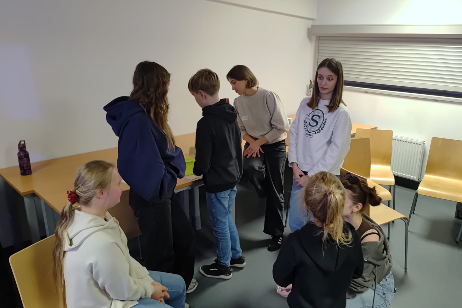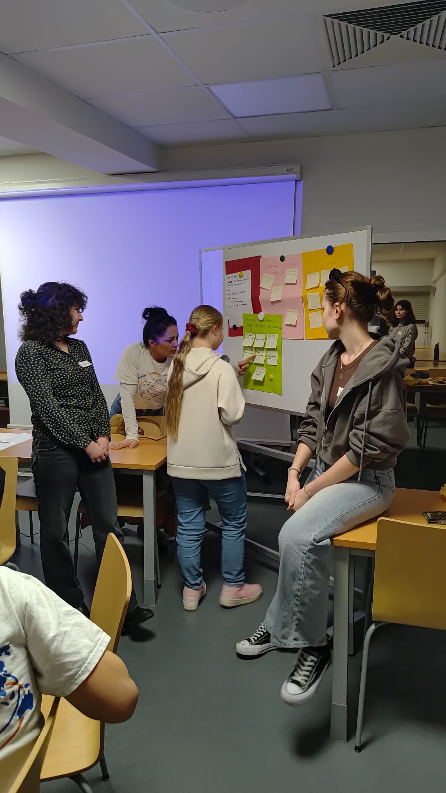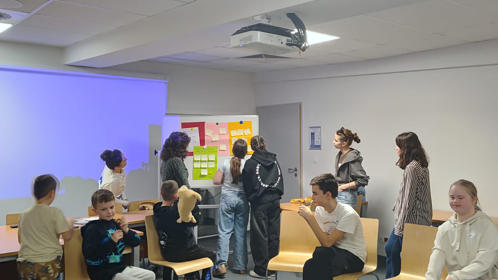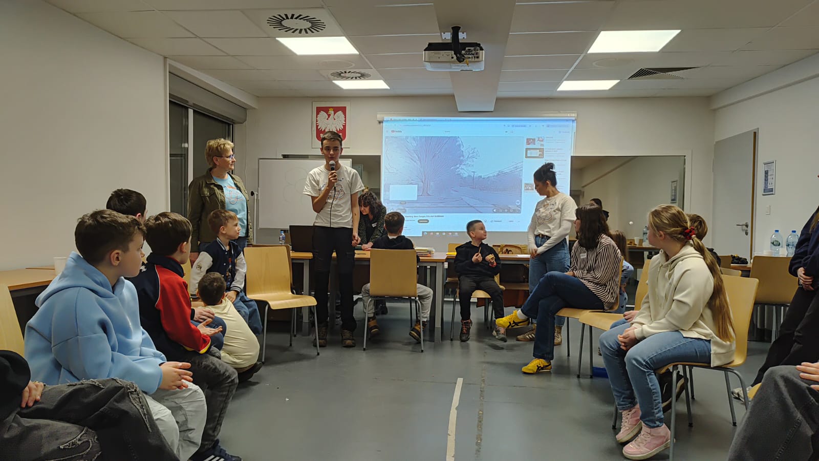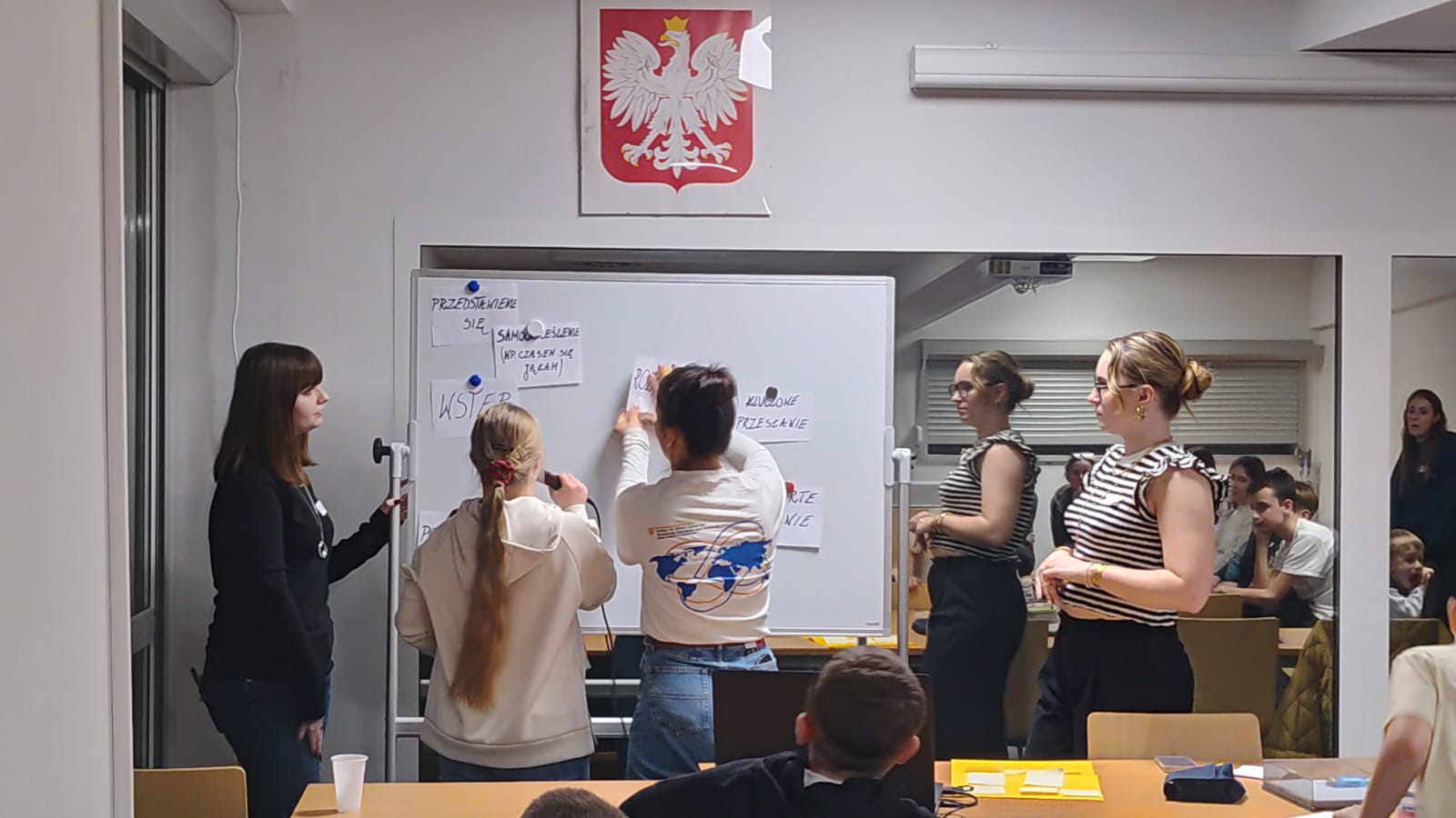W części głównej spotkania uczestnicy przystąpili do pracy nad tworzeniem afirmacji, których celem było wzmacnianie wewnętrznego poczucia sprawstwa oraz gotowości do podejmowania wysiłku komunikacyjnego. Dzieci pracowały w małych grupach (2–3 osoby), opracowując afirmacje odnoszące się do różnych sytuacji społecznych, takich jak odpowiadanie na forum klasy czy inicjowanie kontaktu z nową osobą. Istotnym elementem warsztatów była również aktywność polegająca na wspólnym opracowaniu – w formie mapy na tablicy – kluczowych komponentów efektywnej prezentacji lub wystąpienia publicznego. Szczególną uwagę poświęcono umiejętności samookreślenia (self-disclosure), podkreślając, że powinno ono mieć charakter informacyjny, neutralny.